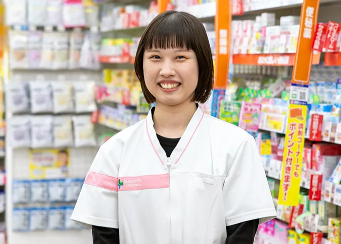 毎月の研修で手厚いサポートがあるため、登録販売者の資格も取得することができました。